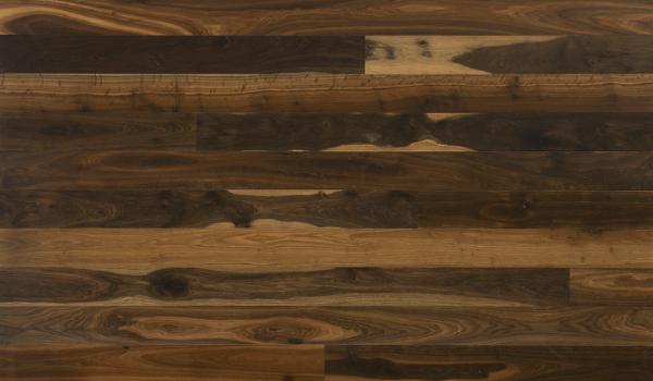 This grade has a dark brown look with substantial colour and structural graining variation between the individual planks. Extensive areas with lighter tones of colour are seen along the grain pattern and in the sapwood. Several small and large knots and natural fine splits occur. Knots and other irregularities are to the greatest extent possible factory filled with a one colour filler.